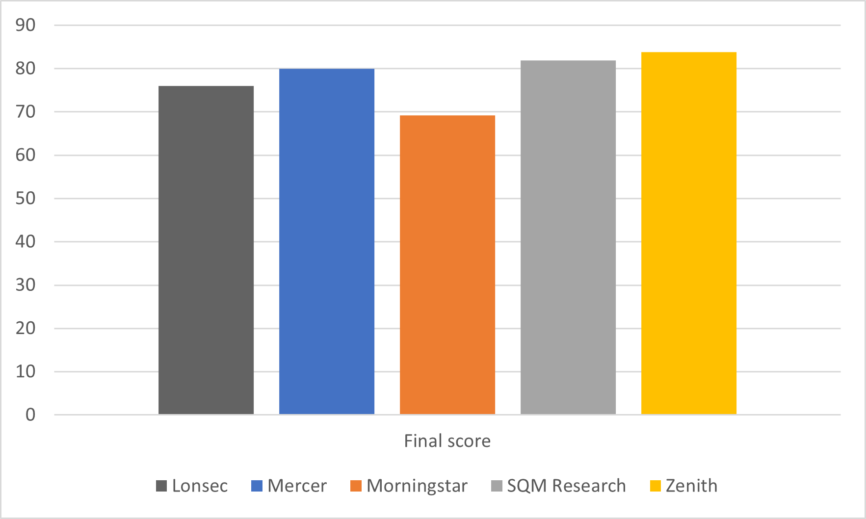 Mercer was rated third by fund manager representatives, with Lonsec and Morningstar at the tail end, respectively.