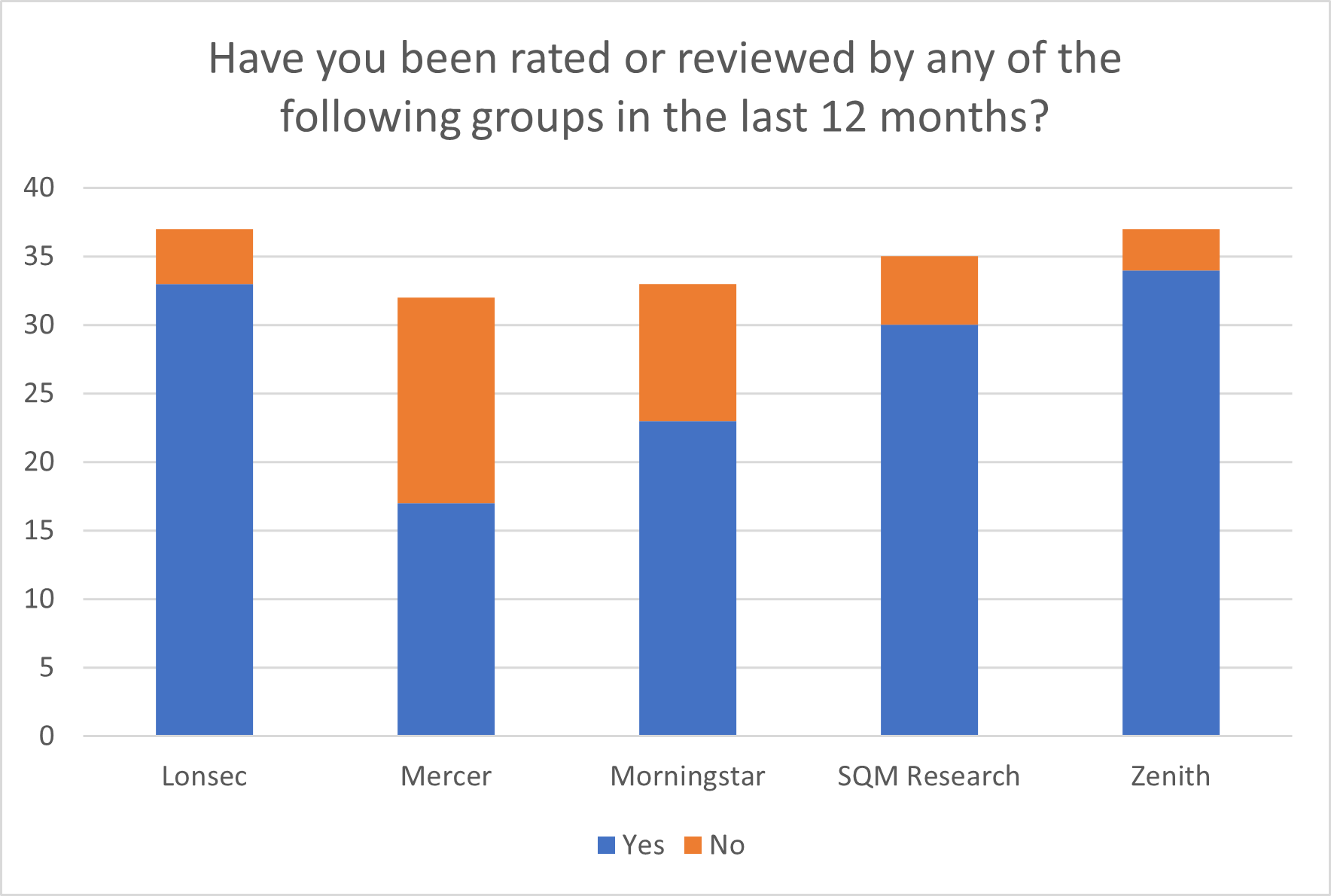 One respondent said they “felt that [the fund’s] exceptionally strong performance over a reasonable period of time warranted a higher rating, but SQM wanted to slowly move up the ratings”, while another commented on the lack of clarity in “Zenith’s focus at the review meeting… given their familiarity with our funds”.
