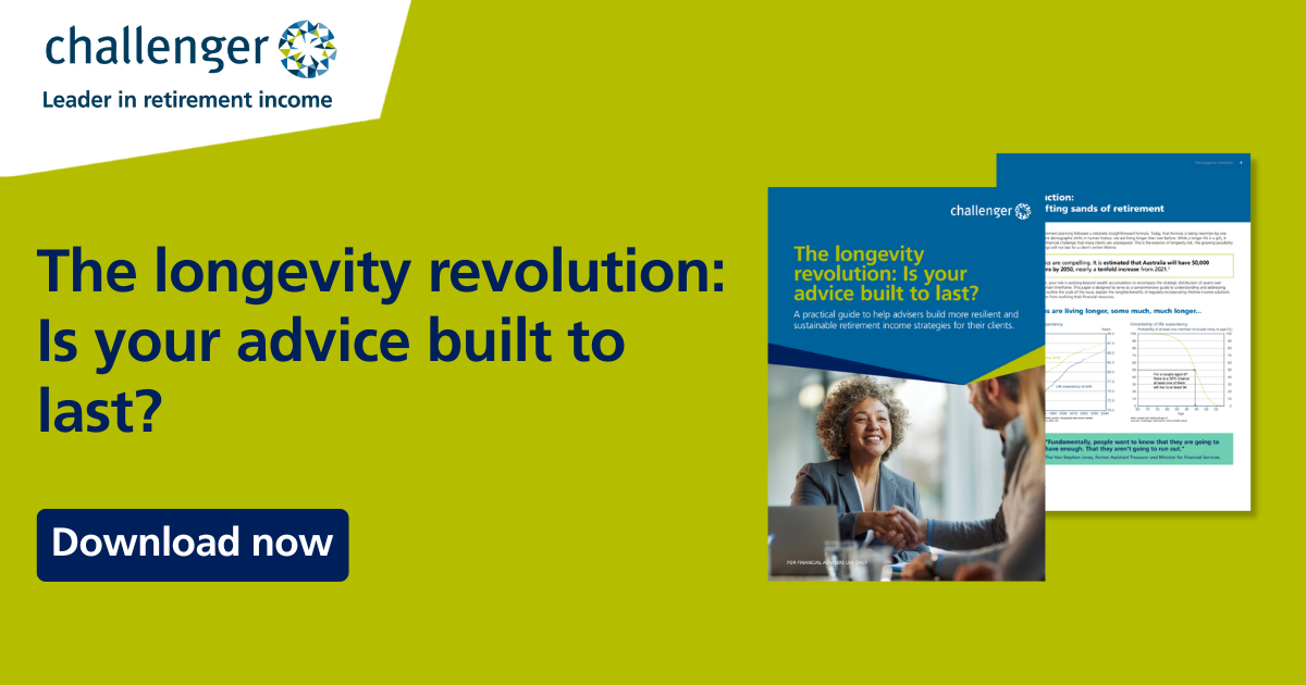 Home > Industry News > Is your retirement advice built to last?Is your retirement advice built to last? Financial Newswire Contributor 10 February 2026 As Australians live longer, longevity risk is reshaping retirement advice. Our guide helps advisers build resilient retirement income plans. Read More Tags:Challengerguideretirementretirement advice