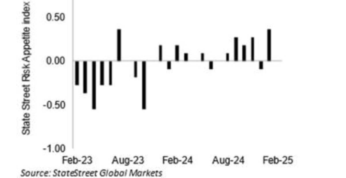 The latest State Street Global Markets Risk Appetite Index fell back to 0 in February, ending a four-month run of risk seeking activity.