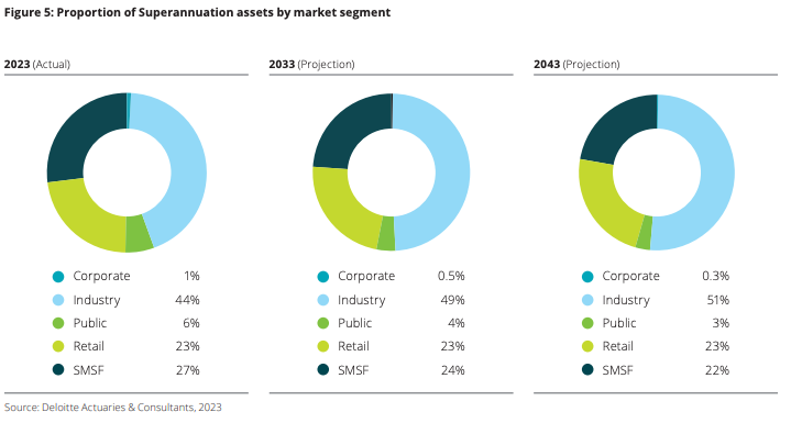 Industry funds are on course to become by far the dominant force in Australian superannuation, according to the latest research from Deloitte.