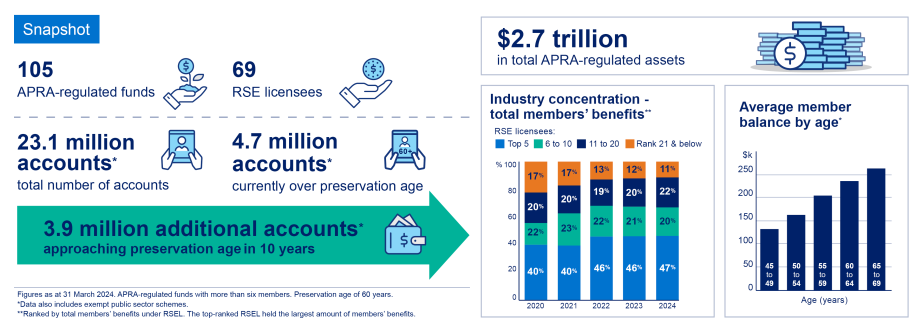 It also shows that 3.9 million superannuation account holders will reach preservation age in the next 10 years.