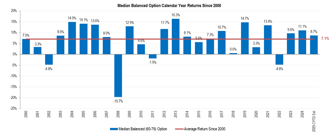 “However, members should be pleased that returns remain strong over the long term with the median balanced option providing an estimated 7.1% per annum over the last 25 years,” Rappel said.