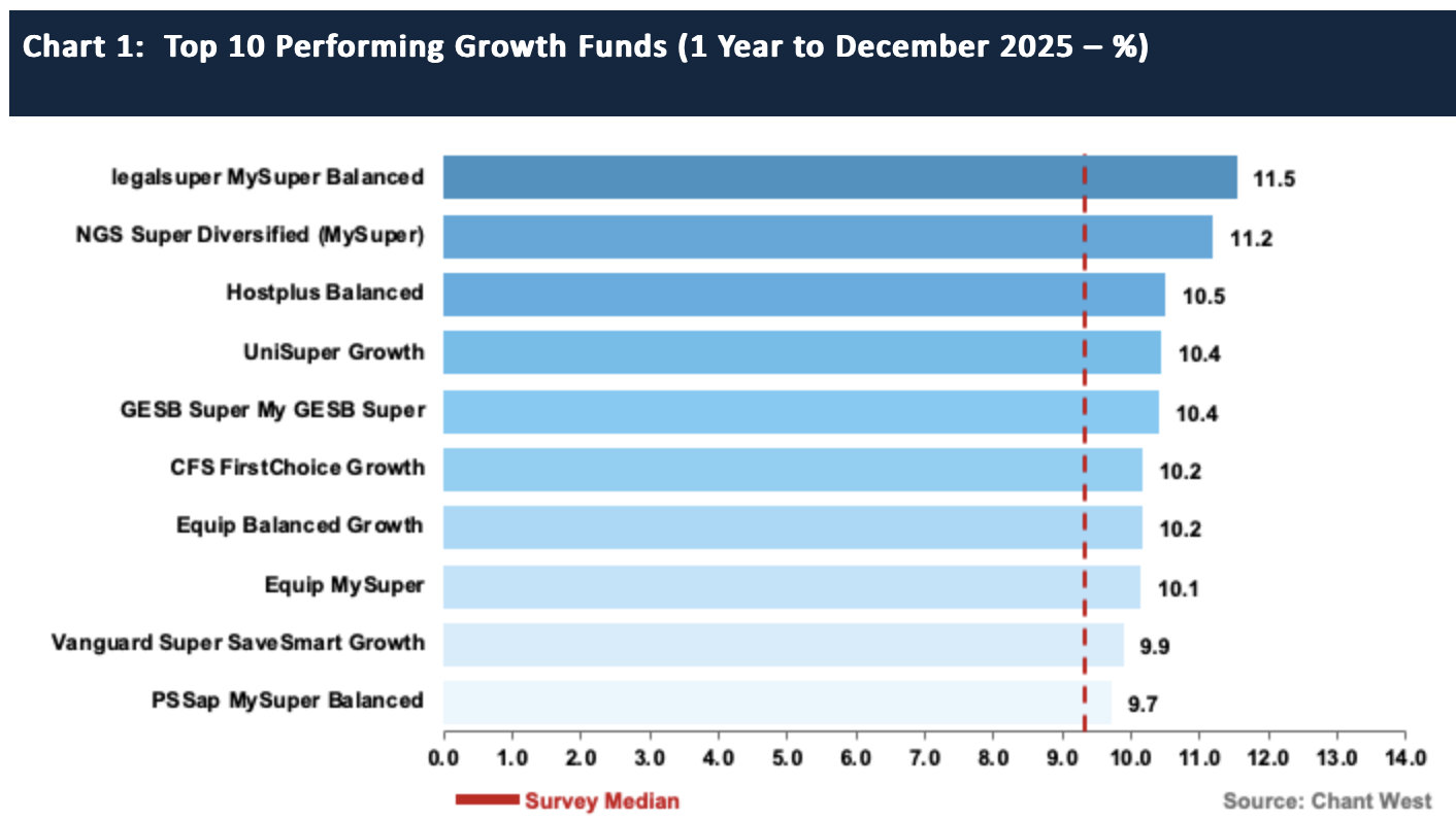 There has been further confirmation of how well Australian superannuation funds navigated 2025, with the median growth fund (61-80% growth assets) returning 9.2%, according to specialist superannuation research house, Chant West.